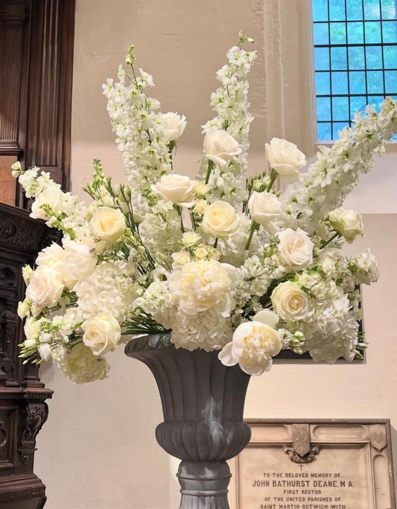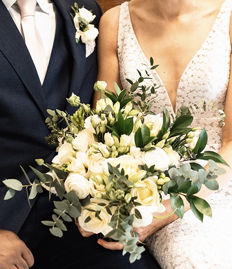 These delicate and traditional English blooms in Ivory & Green were a subtle foil for our beautiful Bride Louise, who wore a stunning ivory lace dress with peach undertones.